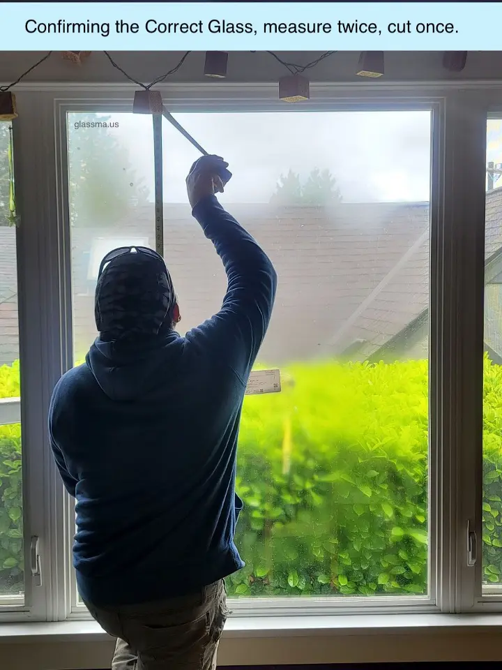 The first step in our process is to ensure we have the right glass for the job. Our technician meticulously measures the existing glass to confirm the dimensions. It’s always “measure twice, cut once” for accuracy. This ensures a perfect fit and avoids any potential issues during installation.
