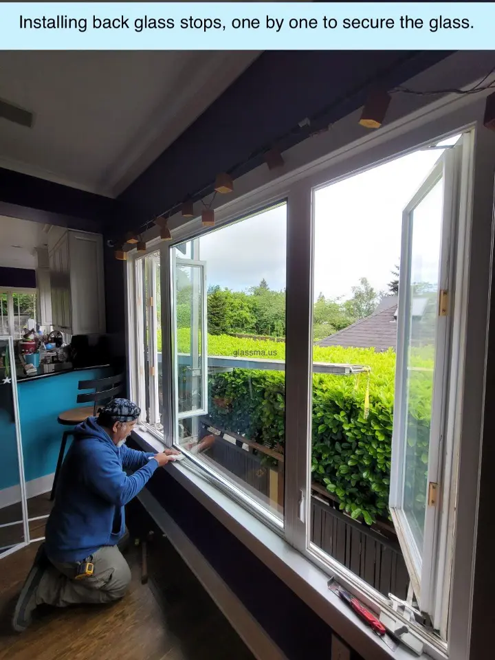 Our pro glazier then meticulously places the glass stops back in one by one. These stops secure the glass in place and ensure that it remains stable and well-supported.